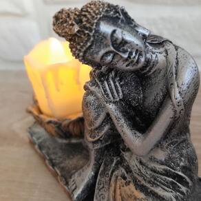 O incrível deste Buda, é que voce pode por incenso vareta ou velinha.Serve como castiçal ou porta incenso.