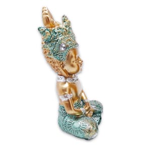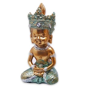 Buda Tailandês da Prosperidade Meditando Azul Gold 12cm