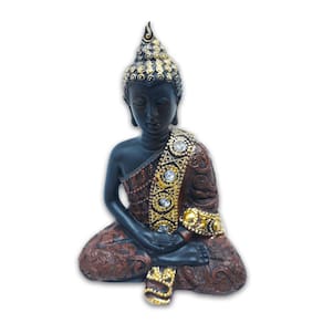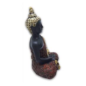 Buda Tailandês Meditando Sentado Yoga Preto Marrom 12 cm