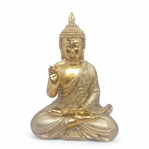 A imagem de Buda é símbolo de amor, paz e felicidade. O Buda tem a intenção de ajudar a elevar a consciência e auxiliar nas meditações, esta ligado à sabedoria e ao equilíbrio. Ela traz para o lar uma elevação espiritual, desperta a consciência para os ensinamentos e sabedoria de Buda. Esta estátua pode ser usada no altar, no local de meditação e oração.