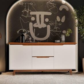 Buffet 2 Portas Flow Off White Com Freijo Com design moderno e linhas elegantes, o Buffet 2 Portas é a escolha ideal para quem busca um móvel sofisticado, funcional e com visual clean.Perfeito para compor salas de jantar, estar ou halls de entrada, o modelo une estética contemporânea e praticidade no uso diá dos seus diferenciais é a régua dupla face, um aplique superior que pode ser montado com dois acabamentos diferentes, permitindo adaptar o visual do móvel conforme o estilo do ém disso, o buffet conta com tampo e portas em MDF usinados, com acabamento refinado que valoriza os detalhes, enquanto a estrutura dos pés em madeira proporciona firmeza, durabilidade e um toque natural.Internamente, oferece amplo espaço para organização, ideal para armazenar louças, utensílios, objetos decorativos ou itens diversos do dia a ões:Altura: 84 cmLargura: 163 cmProfundidade: 40 cmObservações:- Régua dupla face inclusa: escolha o visual que mais combina com seu ambiente - Sem puxadores externos, com design clean e sofisticado - Tampo e portas em MDF usinados, com acabamento de alto padrão - Estrutura dos pés em madeira, com excelente resistência - Amplo espaço interno para organização eficiente, Ideal para salas de jantar, estar, hall ou ambientes sociais