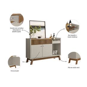 O Buffet Lucca vai encantar o seu ambiente! Com design moderno, possui uma gaveta com detalhe ripado e corrediça telescópica e ainda duas portas de abrir para você guardar objetos que não precisam ficar à mostra. Possui um porta bebidas com haste metálica e espelho. Conta também com pés em estilo retrô, trazendo ainda mais elegância ao seu ambiente!