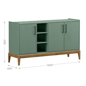 Sistema de montagem simples e rápida. Acabamento da Porta: Pintura Acabamento da Prateleira: Pintura Acabamento dos Pés: Pintura Altura dos Pés: 20,5 cm Ambiente Principal: Sala de Jantar Complexidade da Montagem: Média: pode ser montado por mais de uma pessoa e/ou necessite de maior conhecimento para montagem Cor: Verde/Freijó Cor do Produto: Verde/Freijó Cor Interna: Verde Escala de Brilho: Fosco Escala de Brilho da Porta: Fosco Escala de Brilho da Prateleira: Fosco Itens Inclusos: 1 Buffet, Kit Ferragens e Manual de Montagem Linha ou Coleção: Milão Manual de Especificação Técnica: https://product-hub-prd.madeiramadeira.com.br/833294/documents/561632d6-9e43-4341-b404-025e35d5f36ecAo3portasmilAoverdefreijO.pdf Manual de Montagem e Instalação: https://product-hub-prd.madeiramadeira.com.br/833294/documents/0e3b1992-e40d-498e-99c9-7cc3ebf8fd3d12102572914balcao3portas.pdf Material da Porta: Madeira Maciça Material da Prateleira: MDF Material do Puxador da Porta: Metal Material dos Pés: Madeira Maciça Material Principal: MDF Necessita Montagem: Sim Origem do Produto: Nacional Pés Reguláveis: Não Peso: 41,2 kg Peso Máximo por Prateleira: 10 kg Possui Adega: Não Possui Espelho: Não Possui Nicho: 03 Possui Pés: 04 Possui Portas: 03 Possui Rodízio: Não Recomendações de Uso, Manutenção e Limpeza: Seguir a ordem do manual de montagem; Evitar batidas e contato com objetos cortantes; Não deixe o móvel em locais muito úmidos; Limpar com pano levemente umedecido com água, seguido de pano seco; Não utilizar produtos químicos ou abrasivos; Evite incidência direta de luz solar; Algumas pinturas novas, embora atóxicas, podem apresentar odores. Para amenizá-los, matenha o móvel em local arejado nos primeiros dias de uso. Sapatas Niveladoras: Não Sistema de Montagem: Simples Suporta Até (kg): 10 kg Tipo de Dobradiça/Corrediça da Porta: Metálica Tipo de Madeira Maciça da Porta: Pinus Tipo de Madeira Maciça dos Pés: Pinus Tipo de Porta: Bater Tipo de Puxador da Porta: Externo