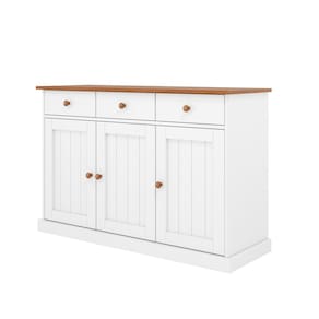 Adicione um toque de charme e organização à sua casa com este buffet versátil e robusto. Fabricado com madeira maciça, ele oferece durabilidade, combinando o clássico branco com o tampo na cor Sépia .
