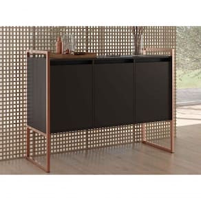 PESO PRODUTO COM EMBALAGEM (KG): 29 | PRODUTO: Buffet 3 Portas Rouxe Preto Cobre | TIPOS DE MÓVEIS DE COZINHA: Balcão | MARCA: Plata | ESTADO DE ORIGEM: SP | PRODUTO PRECISA DE MONTAGEM?: Sim, a montagem é simples mas sugerimos a contratação do nosso de montagem (para os CEPs em que o está disponível) ou de algum experiente de sua preferência | DESCRIÇÃO DO TAMANHO: 87x120x41 cm | MATERIAL PARA FILTRO: MDP | COMPRIMENTO PRODUTO COM EMBALAGEM (CM): 123 | MATERIAL PRINCIPAL: MDP | ALTURA DO PRODUTO (CM): 87 | COMPRIMENTO DO PRODUTO (CM): 41 | LARGURA PRODUTO COM EMBALAGEM (CM): 43 | CONTEÚDO DA EMBALAGEM: 1 Buffet | CORES DO PRODUTO (FILTRO DE CORES): Preto | INSTRUÇÕES/CUIDADOS: Limpar com pano macio e seco, não utilizar produtos abrasivos. | ALTURA DO PRODUTO COM EMBALAGEM (CM): 14 | LARGURA DO PRODUTO (CM): 120 | PESO DO PRODUTO (KG): | COR PREDOMINANTE: Preto