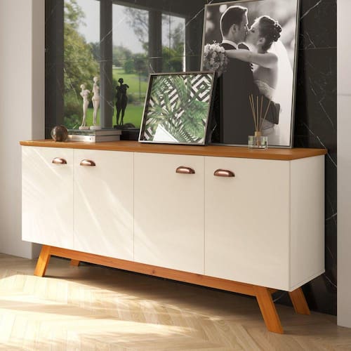 Buffet 4 Portas Atlanta II Moderno Tebarrot O Buffet 4 Portas Atlanta II conta com uma estrutura de MDF/MDP de 15mm, com acabamento em Pintura UV brilhante, que dá um toque de elegância ao produto. com quatro portas e suas prateleiras internas você terá bastante espaço para guardar/ organizar suas louças. Possui 4 puxadores com acabamento na cor Cobre deixando o produto mais moderno. O Tampo é produzido em MDF de 20mm com acabamento em Pintura Texturizada Fosca. A Base do Buffet é feita de Madeira Maciça (Pinus), que deixa o produto ainda mais robusto e duradouro. O Buffet Atlanta é uma ótima solução para sua sala de Jantar, é o complemento ideal para compor a sua sala, com design moderno e sofisticado que você sempre sonhou. Acabamento da Porta: Pintura Acabamento da Prateleira: Pintura UV Acabamento dos Pés: Verniz Altura dos Pés: 21 cm Ambiente Principal: Sala de Jantar Complexidade da Montagem: Média: pode ser montado por mais de uma pessoa e/ou necessite de maior conhecimento para montagem Cor: Off White Cor do Produto: Off White Cor Flex: Não Cor Interna: Off White Escala de Brilho: Brilhante Escala de Brilho da Porta: Brilhante Escala de Brilho da Prateleira: Brilhante Gaveta com Chave: Não Itens Inclusos: 1 Buffet Atlanta II, 1 Kit de Ferragens e Manual de Montagem Linha ou Coleção: Atlanta II Manual de Montagem e Instalação: https://product-hub-prd.madeiramadeira.com.br/548091/documents/63fc6c48-534f-4086-835a-457c2368dff1486516atlantaiibuffetrev09.pdf Material da Porta: MDF Material da Prateleira: MDP Material do Puxador da Porta: Plástico Material dos Pés: Madeira Maciça Material Principal: MDF/MDP Montagem Flex: Não Necessita Montagem: Sim Origem do Produto: Nacional Pés Reguláveis: Não Peso: 40 kg Peso Máximo por Prateleira: 5 kg Possui Adega: Não Possui Espelho: Não Possui Nicho: Não Possui Pés: 04 Possui Portas: 04 Possui Rodízio: Não Recomendações de Uso, Manutenção e Limpeza: Seguir as orientações do Manual de Instruções Sapatas Niveladoras: Não Sistema de Montagem: Parafusos e Cavilhas Suporta Até (kg): 30 kg Tipo de Dobradiça/Corrediça da Porta: Metálica Tipo de Madeira Maciça da Porta: Pinus Tipo de Madeira Maciça dos Pés: Pinus Tipo de Porta: Bater Tipo de Puxador da Porta: Externo