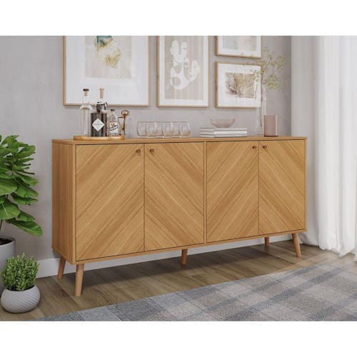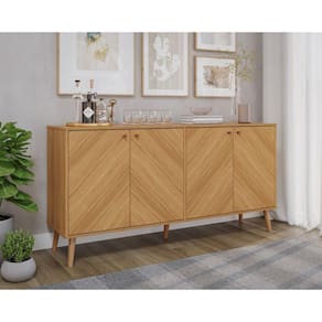 Com o Buffet 4 portas Aurora, seu ambiente com mais estilo, um excelente móvel para guardar suas louças, utensílios e objetos com mais praticidade e ainda modernizar o seu lar, com um móvel que reúne requinte e estilo. Possui 4 portas que ampliam e facilitam o uso diário, com belo visual conta com acabamento pintura UV, pés e puxadores estilo retro que harmonizam ainda mais seu ambiente. Acabamento da Porta: Pintura UV Acabamento dos Pés: Pintura Altura dos Pés: 17 cm Ambiente Principal: Sala de Jantar Complexidade da Montagem: Baixa: pode ser montado por uma pessoa sozinha Cor: Marrom Cor do Produto: Marrom Cor Flex: Não Cor Interna: Marrom Escala de Brilho: Semi-Fosco Escala de Brilho da Porta: Semi-Fosco Itens Inclusos: 1 Buffet, Manual de Montagem, Kit Ferragens Linha ou Coleção: Aurora Manual de Montagem e Instalação: https://cdn2.madeiramadeira.com.br/atributo/permobili/1308260-esquema-montagem-buffet-4-portas-aurora.pdf Material da Porta: MDP Material do Puxador da Porta: ABS Material dos Pés: ABS Material Principal: MDP Montagem Flex: Não Necessita Montagem: Sim Origem do Produto: Nacional Pés Reguláveis: Sim Peso: 27 kg Possui Adega: Não Possui Espelho: Não Possui Nicho: Não Possui Pés: 05 Possui Portas: 04 Possui Rodízio: Não Recomendações de Uso, Manutenção e Limpeza: Não utilizar produtos abrasivos, lustra móvel Sapatas Niveladoras: Não Sistema de Montagem: Parafusos, Cavilhas Suporta Até (kg): 40 kg Tipo de Dobradiça/Corrediça da Porta: Metálica Tipo de Porta: Bater Tipo de Puxador da Porta: Externo