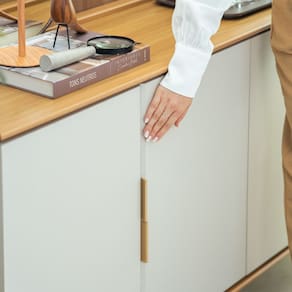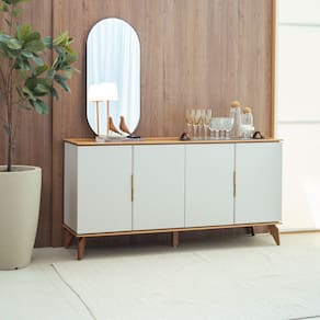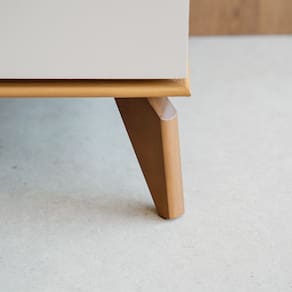 Portas: 4 portas em MDP de abrir Tampo: espessura de 12mm em MDP Prateleira: 2 com espessura de 15mm em MDP Pés: 4 pés de madeira com altura de 16cm Puxador: 4 puxadores de alumínio