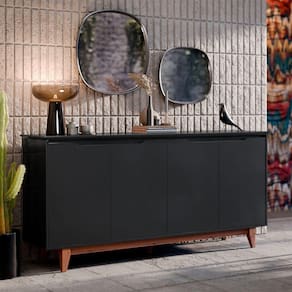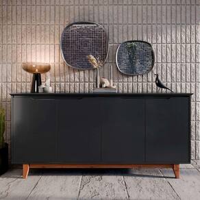 Buffet 4 Portas Flow Preto Com linhas modernas e acabamento sofisticado, o Buffet 04 Portas Flow é a escolha ideal para quem busca funcionalidade e estilo em um único móvel. Perfeito para compor salas de jantar, estar ou ambientes sociais, ele oferece amplo espaço de armazenamento com um visual clean e contemporâ peça conta com estrutura firme com pés em madeira, garantindo resistência, durabilidade e um toque natural ao ambiente. Seu tampo e portas em MDF usinado apresentam um acabamento de alto padrão, evidenciando o cuidado nos modelo aposta na elegância do minimalismo ao dispensar puxadores externos, mantendo uma estética contínua e sofisticada. Internamente, oferece amplo espaço para armazenar louças, utensílios, objetos decorativos ou itens diversos, mantendo tudo sempre bem dos grandes diferenciais da linha é a régua dupla face, um detalhe superior que permite escolher entre dois acabamentos distintos, adaptando o visual do móvel ao estilo da sua decoraçãões:Altura: 84 cmLargura: 163 cmProfundidade: 40 cmObservações:- Régua dupla face inclusa: escolha o acabamento que combina com seu ambiente- Sem puxadores externos: visual limpo e elegante- Tampo e portas em MDF usinado com acabamento refinado- Estrutura dos pés em madeira para maior firmeza e sofisticação- Amplo espaço interno para organização eficiente de objetos e utensílios- Ideal para salas de jantar, estar ou ambientes de convivência