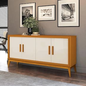Buffet 4 Portas Union Edn Móveis A EDN Móveis vem trazendo uma nova linha de produtos com mais qualidade para sua casa, dentre eles esse lindo Buffet Union com design moderno que irá agregar mais charme e elegância para seu ambiente. Ele conta com estrutura em MDP/MDF e seus pés e puxadores em madeira maciça, proporcionando maior durabilidade ao produto. Para melhorar ainda mais ele é divido em duas partes e quatro portas com prateleiras internas, ideal para organização de seus objetos.