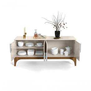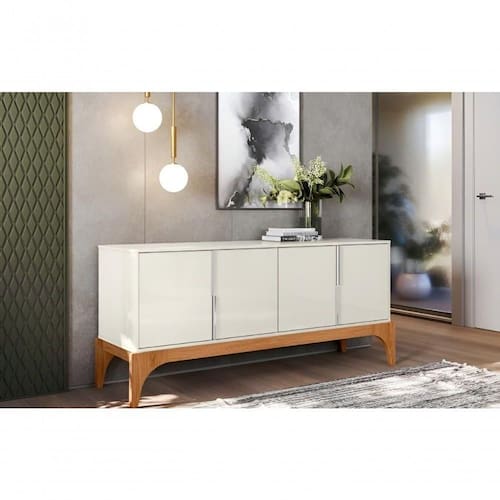 Combinando o Off White Perolizado e o Jequitiba, este buffet oferece um toque de elegância ao seu ambiente, com excelente capacidade de armazenamento.