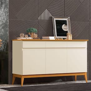 Buffet com amplo espaço interno, 3 gavetas com corrediças telescópicas, 3 nichos, 3 prateleiras móvel, tampo fresado de 18mm, puxadores em cava, 4 pés em madeira maciça. Design contemporaneo. Acomoda utensilios de cozinha, objetos decorativos e outros, produto muito versatil na organização da sua casa Acabamento da Gaveta: Laca Acabamento da Porta: Pintura UV Acabamento da Prateleira: Pintura UV Acabamento dos Pés: Verniz Altura dos Pés: 20 Ambiente Principal: Sala de Jantar Complexidade da Montagem: Média: pode ser montado por mais de uma pessoa e/ou necessite de maior conhecimento para montagem Cor: Off White/Cedro Cor do Produto: Off White/Cedro Cor Interna: Off White Escala de Brilho: Semi-Brilho Escala de Brilho da Gaveta: Brilhante Escala de Brilho da Porta: Semi-Brilho Escala de Brilho da Prateleira: Brilhante Gaveta com Chave: Não Informações Complementares: Buffet com amplo espaço interno, 3 gavetas com corrediças telescópicas, 3 nichos, 3 prateleiras móvel, tampo fresado de 18mm, puxadores em cava, 4 pés em madeira maciça. Design contemporaneo. Acomoda utensilios de cozinha, objetos decorativos e outros. Itens Inclusos: 1 Buffet, Kit Ferragens e Manual de Montagem Linha ou Coleção: Premium Manual de Montagem e Instalação: https://cdn2.madeiramadeira.com.br/atributo/edn-moveis-industria-e-comercio-ltda/1251347-buffet-magnum-1-40.pdf Material da Gaveta: MDF Material da Porta: MDF Material da Prateleira: MDP Material dos Pés: Madeira Maciça Material Principal: MDF/MDP Montagem Flex: Não Necessita Montagem: Sim Origem do Produto: Nacional Pés Reguláveis: Não Peso: 46 Peso Máximo por Gaveta: 5 Peso Máximo por Prateleira: 2 Possui Adega: Não Possui Espelho: Não Possui Nicho: 03 Possui Pés: 04 Possui Portas: 03 Possui Rodízio: Não Recomendações de Uso, Manutenção e Limpeza: Recomendamos que a limpeza dos móveis EDN seja efetuada com sabão neutro e pano umedecido Sapatas Niveladoras: Não Sistema de Montagem: Parafusos, Cavilhas e Minifix Suporta Até (kg): 30 Tipo de Corrediça da Gaveta: Metálica Telescópica Tipo de Dobradiça/Corrediça da Porta: Metálica Tipo de Madeira Maciça: Pinus Tipo de Madeira Maciça dos Pés: Pinus Tipo de Porta: Bater Tipo de Puxador da Gaveta: Embutido Tipo de Puxador da Porta: Embutido