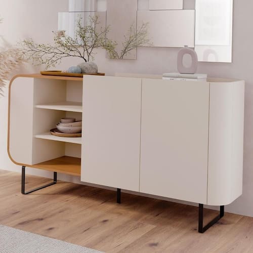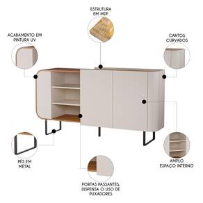 Buffet Aparador 160cm 2 Portas Orgânico Pé Metal Sindy Off Z56 - Mpozenato