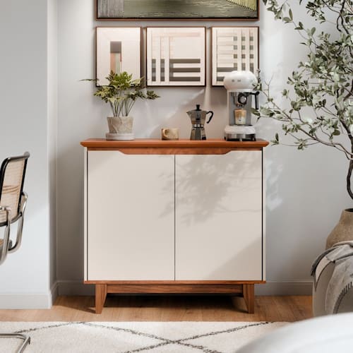 Características: Estrutura MDP Acabamento UV 02 Portas Articuladas com Dobradiças Metálicas 01 Prateleira com Amplo Espaço Interno Régua Dupla Face (2 Opções de Montagem) Sem Puxadores Externos Pés em Madeira Pinus Suporta 25kg distribuídos