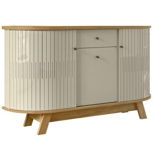 O Buffet Aparador Monza combina traços curvos, detalhes vazados e estilo retrô para transformar sua decoração com leveza e sofisticação.