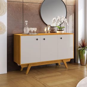 Perfeito para trazer a organização que falta na sua sala de jantar ou estar, o Buffet Harmonia é também um complemento e tanto para o ambiente. Possui Portas com dobradiça de pressão, puxadores em ABS e Pés em madeira maciça. Com visual moderno esse móvel é uma adição impecável em sua casa. Acabamento da Gaveta: Acabamento da Porta: Pintura UV Acabamento da Prateleira: Pintura UV Acabamento dos Pés: Altura do Espelho: Altura do Espelho 01: Altura do Espelho 02: Altura do Espelho 03: Altura do Espelho 04: Altura do Espelho 05: Altura do Espelho 06: Altura dos Pés: Ambiente Principal: Sala de Jantar Complexidade da Montagem: Baixa: pode ser montado por uma pessoa sozinha Cor: Cinamomo/Off White Cor do Produto: Cinamomo/Off White Cor Flex: Cor Interna: Cinamomo Escala de Brilho: Fosco Escala de Brilho da Gaveta: Escala de Brilho da Porta: Brilhante Escala de Brilho da Prateleira: Fosco Espessura do Espelho: Fita Integrada: Formato do Espelho: Gaveta com Chave: Informações Complementares: Itens Inclusos: 1 Buffet, Kit Ferragens e Manual de Montagem Largura do Espelho: Largura do Espelho 01: Largura do Espelho 02: Largura do Espelho 03: Largura do Espelho 04: Largura do Espelho 05: Largura do Espelho 06: Linha ou Coleção: Manual de Especificação Técnica: Manual de Montagem e Instalação: https://cdn2.madeiramadeira.com.br/atributo/jcm-moveis/1195778-buffet-harmonia-ref-7600-jcm-passo-a-passo-f4.pdf Material da Gaveta: Material da Porta: MDP Material da Prateleira: MDP Material do Puxador da Gaveta: Material do Puxador da Porta: ABS Material dos Pés: Madeira Maciça Material Principal: MDP Montagem Flex: Necessita Montagem: Sim Origem do Produto: Nacional Pés Reguláveis: Peso: 27.5 Peso Máximo por Gaveta: Peso Máximo por Prateleira: 10 Possui Adega: Não Possui Espelho: Não Possui Nicho: Não Possui Pés: 04 Possui Portas: 03 Possui Rodízio: Não Quantidade de Espelho: Quantidade de Garrafas da Adega: Recomendações de Uso, Manutenção e Limpeza: Pano levemente úmido Rodízio com Trava: Sapatas Niveladoras: Não Sistema de Montagem: Parafusos e Minifix Suporta Até (kg): 40 Tipo de Corrediça da Gaveta: Tipo de Dobradiça/Corrediça da Porta: Metálica Tipo de Fixação do Espelho: Tipo de Madeira Maciça: Tipo de Madeira Maciça da Gaveta: Tipo de Madeira Maciça da Porta: Tipo de Madeira Maciça da Prateleira: Tipo de Madeira Maciça do Puxador da Gaveta: Tipo de Madeira Maciça do Puxador da Porta: Tipo de Madeira Maciça dos Pés: Eucalipto Tipo de Porta: Bater Tipo de Puxador da Gaveta: Tipo de Puxador da Porta: Externo