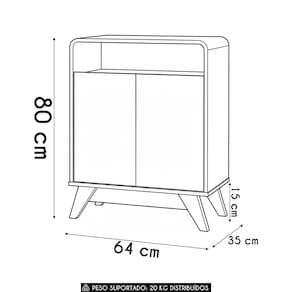 A estrutura em MDP garante resistência e estabilidade no uso diário, enquanto os cantos curvos reforçam o apelo estético do Buffet Aparador, criando uma composição moderna e agradável visualmente.
