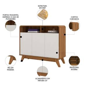 Buffet Aparador 95cm 3 Portas Orgânico Marlo Nature/Off Z56 - Mpozenato