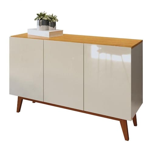 O Buffet Aparador Ares 3 Portas - MoveisAqui é a peça que faltava para complementar sua sala de jantar. Seu design clean com cava no lugar de puxadores e pés em madeira garante o requinte e delicadeza que você busca para agregar o seu ambiente. Seu amplo espaço interno com divisórias auxiliam na organização e praticidade do dia-a-dia.