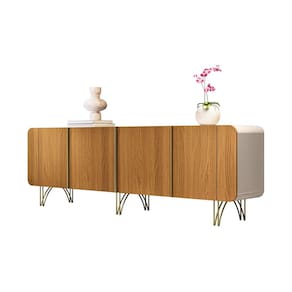 Observações: Buffet com cantos arredondados e amplo espaço interno; 04 portas com dobradiças laterais e puxadores em alumínio com acabamento dourado; Sistema de amortecimento para portas, proporcionando um fechamento suave e silencioso; Pés em aço maciço 3/8 com acabamento em tom dourado; Produzido em MDF e MDP de 15mm;