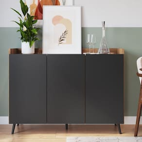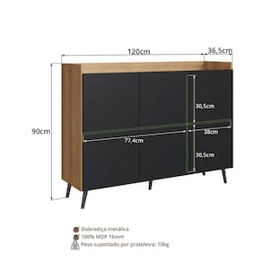 Ideal para sua casa! Com designer retro ele irá agregar muito mais charme e requinte ao seu ambiente. Possui três portas com dobradiças metálicas, e amplo nicho interno. Uma prateleiras e amplo tampo para acomodar bebidas, objetos de decoração, taças etc. Elaborado em MDP, de 1,5cm garante ao produto maior resistência e durabilidade. Acabamento da Porta: Finish Foil Acabamento da Prateleira: Finish Foil Acabamento dos Pés: Liso Altura dos Pés: 17 cm Ambiente Principal: Sala de Estar codigo_ean: 7900288273963 Complexidade da Montagem: Média: pode ser montado por mais de uma pessoa e/ou necessite de maior conhecimento para montagem Cor: Mel/Preto Cor do Produto: Mel/Preto Cor Flex: Não Cor Interna: Mel/Preto Escala de Brilho: Fosco Escala de Brilho da Porta: Fosco Escala de Brilho da Prateleira: Fosco Itens Inclusos: 1 Buffet, Kit Ferragens e Manual de Montagem Linha ou Coleção: AP0012 Manual de Montagem e Instalação: https://product-hub-prd.madeiramadeira.com.br/983618017/documents/89d77630-ae40-44ea-90d8-48a66de883ca3291941522517613191943021.pdf Marca: Plasmóbile Material da Porta: MDP Material da Prateleira: MDP Material dos Pés: Plástico Material Principal: MDP Montagem Flex: Não Necessita Montagem: Sim Origem do Produto: Nacional Pés Reguláveis: Não Peso: 29,7 kg Peso Máximo por Prateleira: 10 kg Possui Adega: Não Possui Espelho: Não Possui Nicho: Não Possui Pés: 05 Possui Portas: 03 Possui Rodízio: Não Recomendações de Uso, Manutenção e Limpeza: Para a limpeza do móvel utilizar pano levemente umedecido Sapatas Niveladoras: Não Sistema de Montagem: Parafusos e cavilhas Suporta Até (kg): 40 kg Tipo de Dobradiça/Corrediça da Porta: Metálica Tipo de Porta: Bater Tipo de Puxador da Porta: Não Possui - Abertura por Fecho Toque Marca: Não Informado