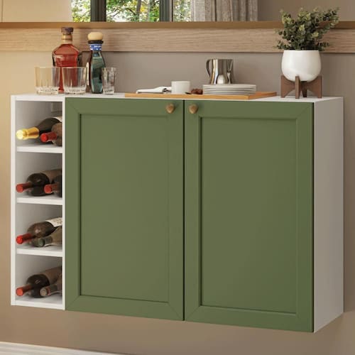 Com instalação suspensa, otimizando o espaço, sendo ideal para salas de jantar ou áreas gourmet. As duas portas com amplo espaço interno facilitam o armazenamento de louças, taças e utensílios, enquanto a adega lateral comporta diversas garrafas. As dobradiças com amortecimento proporcionam fechamento suave e silencioso, garantindo conforto e durabilidade no uso diário.