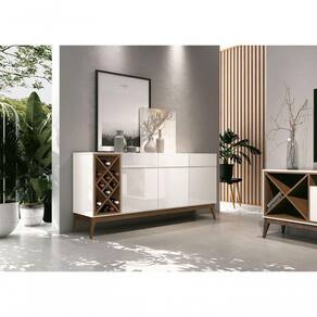 Buffet Aparador Com Adega Passion Off White Com - Edn Móveis O Buffet Aparador com Adega Passion - EDN Móveis é charmoso e delicado, ideal para complementar a decoração do seu ambiente. Seus pés em madeira maciça, gavetas com corrediças telescópicas, portas com prateleiras internas e adega, garantem a organização e praticidade ao dia-a-dia, pois comporta desde utensílios de cozinha, pratos, copos e diversos, até objetos decorativos. Versátil e funcional, pode ser utilizado, inclusive, como extensão da mesa de jantar, permitindo acomodar pratos prontos e tudo mais que você ões do Produto Montado:Altura: 81,5 cmLargura: 172,5 cmProfundidade: 44 cmObservações:- Adega;- Três Gavetas com corrediças telescópicas;- Três Portas;- Prateleiras internas;- Pés em madeira maciça;- Pintura Ultravioleta com acabamento fosco na cor ;- Pintura Ultravioleta com acabamento brilho na cor off white.