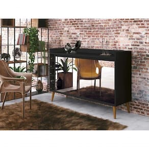 O Buffet com Adega Wine com Espelho - MóveisAqui possui um lindo design que garante a sofisticação e o requinte que seu ambiente precisa. Suas portas e adegas organizam com perfeição diversos tipos de utensílios de cozinha, além de garrafas e seu superior possui um amplo espaço para acomodar objetos de decoração e outos itens que precisam estar sempre a mão.