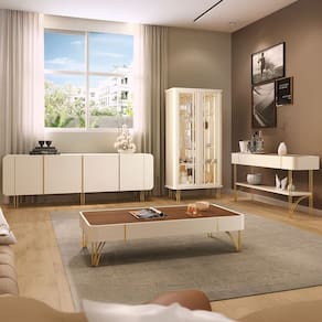 Conteúdo da Embalagem: 1 Cristaleira, 1 Buffet, 1 Aparador, 1 Mesa de Centro.