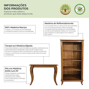 Características Gerais Conjunto composto por: 1 Aparador Luiz XV + 1 Estante Luiz XV Cor: Castanho Material: Madeira resistente / maciça Design clássico com pés curvados Visual elegante e atemporal Uso indicado para ambientes internos