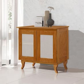 AS IMAGENS SÃO MERAMENTE ILUSTRATIVAS E PODEM SOFRER VARIAÇÕES DE COR E PEQUENOS DETALHES DE ACORDO COM O SEU MONITOR, ILUMINAÇÃO DO AMBIENTE E ATÉ MESMO A SUA PERCEPÇÃO VISUAL.Buffet Aparador Deltan 2 Portas Madeira MaciÃa e Telinha Indiana - Castanho