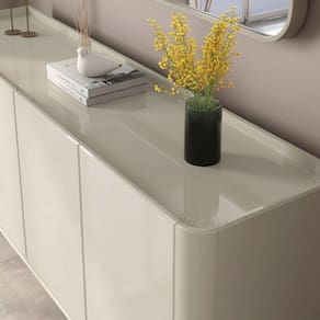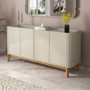Buffet Aparador Flip 4 Portas Off White Com design contemporâneo e linhas elegantes, o Buffet Flip é ideal para quem busca praticidade e sofisticação em um único mó estrutura conta com portas amplas que garantem excelente espaço interno para armazenar louças, utensílios, jogos americanos e objetos diversos, mantendo tudo sempre acabamento refinado reforça o visual moderno e clean, enquanto os pés em madeira adicionam um toque natural e proporcionam firmeza e ões:Altura: 80cmLargura: 160cmProfundidade: 44,5cmObservações:- Portas espaçosas com ótimo espaço interno- Acabamento de alto padrão com visual clean- Pés em madeira resistentes e com toque natural- Design moderno e fácil de combinar com diversos ambientes