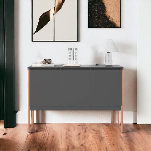 O Buffet oferece amplo espaço de armazenamento e design sofisticado, ideal para salas de jantar ou estar. Feito em MDP Perfex 15mm com estrutura em aço cobre, possui 3 compartimentos internos.