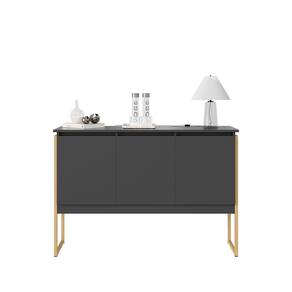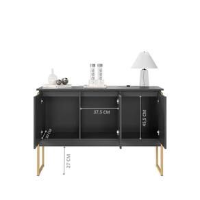 Buffet oferece amplo armazenamento com design sofisticado, ideal para salas de jantar ou estar. Feito em MDP Perfex 15mm, com bordas em ABS e estrutura em aço dourado, possui 3 compartimentos internos.