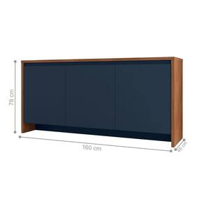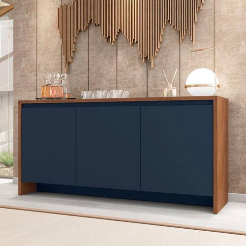 O aparador é uma ótima solução para compor ambientes de sala de estar, salas de jantar, hall de entrada ou até mesmo servir como divisor de ambientes. Elaborado em MDF, MDP. Tampo e laterais em MDP de 15mm, portas em MDF de 15mm. Acabamento feito em Semi Brilho O Aparador possui gavetas com corrediças telescópicas. Bordas com acabamento Soft PU. Suporta até 125 Kg. Dimensões do Produto: Altura: 78 cm Largura: 160 cm Comprimento: 46 cm Especificações: Material: MDF/MDP Cor: Cedro Azul Cobalto Material do Tampo: MDP 12mm Tipo de Corrediça: Telescópica Portas: Sim (3) Prateleiras: Sim (3) Nichos: Sim (6) Gavetas: Sim (1) Itens Inclusos: 01 Aparador Kit completo para montagem e manual de instruções Garantia 3 meses contra defeito de fabricação Informações complementares: - Fotos meramente ilustrativas do produto no ambiente. - Os objetos que ambientam as fotos não acompanham o produto; - Verificar descrição e tamanho do produto antes da compra. - Avaliar a mercadoria no ato do recebimento e recusar em caso de divergência. - Limpar com flanela ou pano macio seco. Não expor o produto à luz solar e à umidade. Sugerimos a contratação de um montador profissional para a montagem do produto. Não nos responsabilizamos por danos causados no ato da montagem. Não nos responsabilizamos pela montagem e desmontagem do produto, assim como os custos gerados nestas situações. * Não nos responsabilizamos por subir escadas, corredores e elevadores ou guincho em apartamentos.