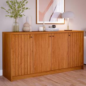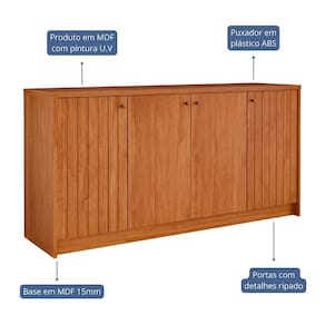 Buffet Aparador Lia 4 Portas - Cimol Móveis O Buffet Aparador Lia 4 Portas combina elegância e funcionalidade. Produzido em MDF com pintura UV, conta com 4 portas equipadas com dobradiças metálicas, detalhes em baixo relevo nas laterais e prateleiras internas para melhor organização. Seu tampo de 25 mm e base de 15 mm garantem resistência, enquanto os puxadores em ABS agregam um toque sofisticado. Com amplo espaço interno, é ideal para compor sua sala de jantar ou estar com charme e praticidade.