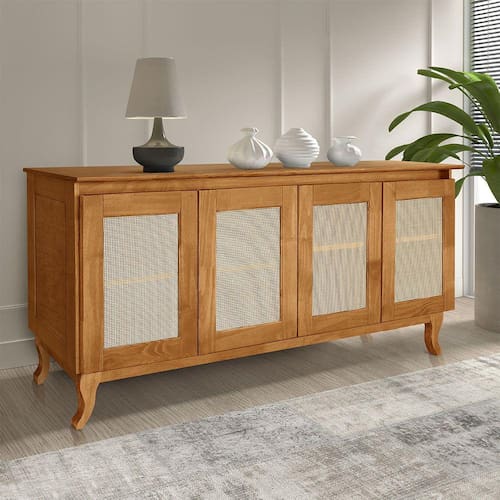 Buffet Aparador Madeira Vintage Tela 4p Deltan Imbuia - Atraente Móveis O Buffet Aparador Deltan possui estilo Vintage, que traz um ar contemporâneo e sofisticado ao produto. Possui uma elegante base de madeira maciça que traz um charme adicional ao ambiente.