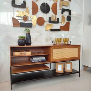 Buffet Aparador para Sala de Jantar - Agnes - Móveis Montanhês   O Buffet Agnes é um mobiliário versátil, conferindo multifunções, além de ser lindo e sustentável! Possui estrutura metalica em aço com pintura eletrostática e a estrutura da bandeja com lâmina de sumaúma. O buffet Agnes possui um desing diferenciado com um toque rústico de um jeito que você nunca viu nada igual! Tenho certeza que vai deixar sua sala muito mais bonita! Confira e aproveite!   Faz parte do anúncio: 1 Buffet Aparador para Sala de Jantar - Agnes - Montanhês Móveis Obs: Objetos decorativos não acompanham o produto.   Particularidades do Buffet: Características - Estrutura metalica em aço com pintura eletrostática - Feito com lâmina de sumaúma - Detalhe de telinha (rattan) - Design rústico e sofisticado - Madeira Ecologicamente Correta - Baseado em conceitos sustentáveis - Madeira altamente resistente   Dimensões Buffet Altura: 80 centímetros Largura: 1,60 metros Profundidade: 40 centímetros     Informações Importantes: - Produtos podem apresentar diferenças de tonalidades entre a foto na tela e o produto real, devido a calibração de cor de tela.   - Limpar com flanela ou pano macio. Não utilizar álcool. Não utilizar produtos abrasivos ou corrosivos. - Nós prezamos pela qualidade da entrega em primeiro lugar, trabalhamos com transportadoras altamente selecionadas e os melhores materiais de embalagem. - Todos os itens já vão semi montados e embalados. - Não necessita de montagem de um profissional, ficando a critério do cliente. - NÃO NOS RESPONSABILIZAMOS PELA MONTAGEM. - Objetos de decoração não incluso. - Certifique-se de que o produto caiba em elevadores e vãos de escadas, não fazemos içamentos ou desmontagens de produtos. Quaisquer despesas deste tipo ficam a cargo do cliente. - Garantia de 3 meses contra defeitos de fabricação.