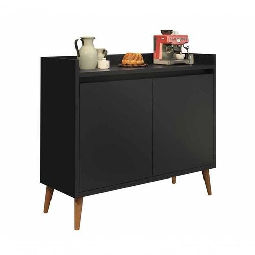 Buffet Aparador Retrô Clássico 2 Portas Preto - Moveisaqui Ideal para organizar melhor sua sala de jantar ou de estar, o Buffet Aparador Retrô Clássico 2 Portas - MoveisAqui trouxe de volta a pegada retrô que veio para ficar. Os pés estilo palito, levemente angulados, se destacam pelo charme que garante à peça. Seus compartimentos internos são ideais para armazenar e organizar diversos tipos de objetos pessoais, além de seu aparelho de jantar e demais itens que sejam necessários. Lindo, robusto e versátil, garante um espaço moderno e ões do Produto Montado:Altura: 80 cmLargura: 90 cmProfundidade: 33 cmObservações:- Produzido em MDP;- 2 portas com dobradiças metálicas;- Pés palito, estilo retrô, em madeira pinus;- Peso suportado por prateleira: até 7kg;- Pintura Ultravioleta com acabamento fosco. Marca: Não Informado