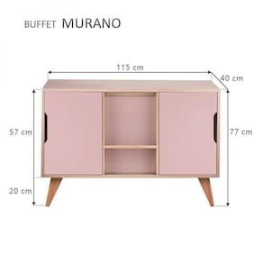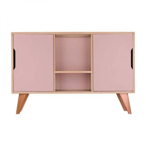 Buffet / Aparador / Balcão Retrô Modelo Murano cor Carvalho Treviso com 2 portas Rosa Claro, o móvel perfeito para deixar seu ambiente com estilo e organizado.