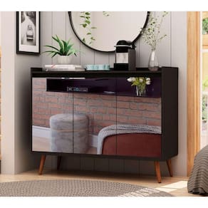 Ideal para organizar melhor sua sala de jantar ou de estar, o Buffet Aparador Retrô com Espelho Delux 3 Portas - MoveisAqui trouxe de volta a pegada retrô que veio para ficar. Os pés estilo palito, levemente angulados, se destacam pelo charme que garante à peça. Seus compartimentos internos são ideais para armazenar e organizar diversos tipos de objetos pessoais, além de seu aparelho de jantar e demais itens que sejam necessários. Lindo, robusto e versátil, garante um espaço moderno e organizado.