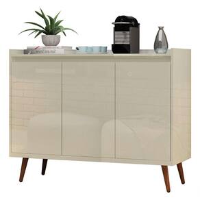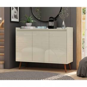 Buffet Aparador Retrô Delux 3 Portas Off White - Moveisaqui Ideal para organizar melhor sua sala de jantar ou de estar, o Buffet Aparador Retrô Delux 3 Portas - MoveisAqui trouxe de volta a pegada retrô que veio para ficar. Os pés estilo palito, levemente angulados, se destacam pelo charme que garante à peça. Seus compartimentos internos são ideais para armazenar e organizar diversos tipos de objetos pessoais, além de seu aparelho de jantar e demais itens que sejam necessários. Lindo, robusto e versátil, garante um espaço moderno e organizado.Dimensões do Produto Montado:Altura: 96 cmLargura: 120 cmProfundidade: 45 cmObservações:- Produzido em MDP;- 3 portas com dobradiças metálicas;- Pés palito, estilo retrô, em madeira pinus;- Peso suportado por prateleira: até 7kg;- Pintura Ultravioleta com acabamento brilho. Marca: Não Informado