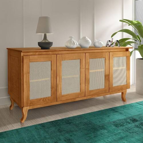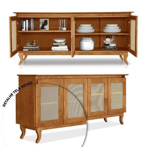 O Buffet Aparador Rustico Retrô 4p Deltan é produzido em madeira pinus de alta qualidade, com componentes internos em MDF, garantindo durabilidade e resistência. Seu design retrô é evidenciado pelos pés estilo retrô e pelas 4 portas com uma telinha especial, conferindo um toque único ao móvel.