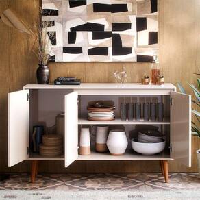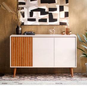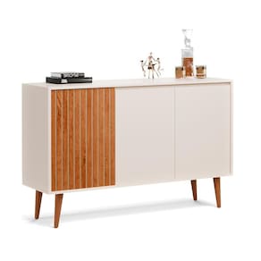 Buffet Aparador Sala De Estar E Jantar Star Off White - Moveisaqui Compacto e moderno, o Buffet Aparador Star da MoveisAqui une linhas retas com o charme do ripado. Ideal para salas de estar, jantar ou home bar, organiza louças e objetos mantendo o ambiente elegante.Destaques- Design compacto com 3 portas: 1 porta ripada + 2 portas lisas- Prateleira interna para melhor aproveitamento do espaço- Pés em madeira maciça que elevam e valorizam o móvel- Acabamento em tom amadeirado no ripado e corpo liso moderno- Visual clean e fácil de combinar com diferentes estilos de decoraçãoMateriais- Estrutura em MDP- Pés em madeira maciçaDimensões do ProdutoAltura: 85 cmLargura: 110 cmProfundidade: 37 cmIndicado para- Sala de estar, sala de jantar, hall de entrada e home barObservações- Objetos decorativos não acompanham o produto- As cores podem variar conforme a iluminação/tela- Recomendado montar sobre piso nivelado para melhor estabilidade- Manual de montagem acompanha o produto Marca: Não Informado