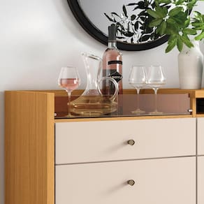 O Buffet Aparador Sollare une sofisticação e funcionalidade para seu ambiente. Com estrutura em MDP e MDF, possui acabamento em pintura UV, garantindo resistência e durabilidade. Seu design conta com duas portas com frisos decorativos alinhadas à gaveta lateral. Com uma gaveta e um gavetão, ambos com corrediças telescópicas, oferece organização e praticidade. A bandeja lateral no estilo bar, com vidro reflecta e espelho, é ideal para armazenar bebidas e acessórios. Os puxadores pontuais na cor champanhe adicionam um toque sofisticado, enquanto os pés de madeira maciça com design exclusivo e acabamento envernizado garantem estabilidade e elegância. Perfeito para compor sua sala de jantar ou estar com estilo.