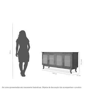 Dimensões do Produto Montado: Altura: 75,5 cm Largura: 163 cm Profundidade: 41 cm Observações: - Possui 04 portas Informações adicionais: - Verifique o tamanho e os detalhes do produto antes de realizar a compra. - As fotos são meramente ilustrativas. Objetos decorativos que aparecem nas imagens não acompanham o produto. - A transportadora entregará o produto no portão e/ou portaria da residência, ou ainda, somente no andar térreo, em caso de prédios, do endereço de entrega. - Avaliar a mercadoria no ato do recebimento e recusar em caso de divergência ou danos.