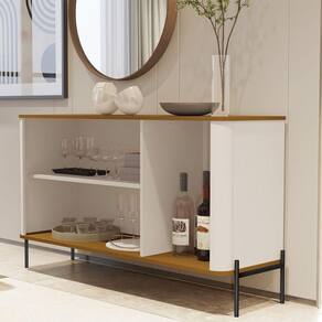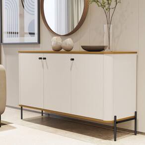 Buffet Aparador Tucupi Off White Com Nature Pe Preto - Moveis Jb Com design contemporâneo e estrutura inteligente, o Buffet Tucupí é a escolha ideal para quem busca funcionalidade, estilo e sofisticação na sala de jantar ou em ambientes integrados.O modelo conta com portas articuladas que revelam prateleiras internas bem distribuídas, oferecendo excelente espaço para organizar louças, utensílios, jogos de jantar e outros itens do cotidiano.O tampo superior é perfeito para apoiar objetos decorativos, bandejas, bebidas ou servir como aparador em ocasiões especiais.Fabricado 100% em MDF com acabamento de alto padrão, garante durabilidade, firmeza estrutural e um visual elegante que valoriza qualquer ambiente.Dimensões:Altura: 75,5 cmLargura: 133 cmProfundidade: 42 cmObservações:- Produzido 100% em MDF com acabamento resistente e refinado- Portas com prateleiras internas para organização versátil- Tampo amplo ideal para apoio decorativo ou funcional- Design moderno, com linhas limpas e visual sofisticado- Estrutura robusta e excelente aproveitamento interno Marca: Não Informado