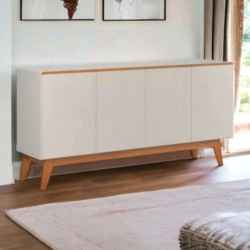 Esse produto é a peça que faltava para complementar sua sala de jantar. Seu design clean com cava no lugar de puxadores e pés em madeira garante o requinte e delicadeza que você busca para agregar o seu ambiente!