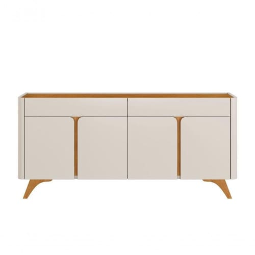 O Buffet Aros de 4 portas possui um lindo charme e sofisticação, um produto com design moderno em curva, possuindo vista flex em duas cores, além de dobraciças em slow motion. O buffet além de ter esse lindo design, ainda possui perfeito pés de madeira maciça. Um produto perfeito para colocam em qualquer cômodo de sua casa. Esse produto possui nas cores Off White e Off White com Naturalle.