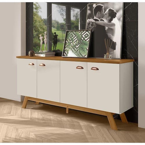 - Possui 4 portas com puxadores de plastico 64mm na cor cobre fosco